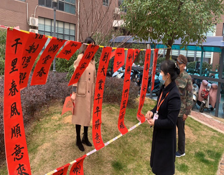 一大早,贛州城投集團振興實業(yè)公司黨支部黨員、入黨積極分子來到創(chuàng)業(yè)家園小區(qū)有的與部分租戶一起掛燈籠中國結(jié),營造濃厚的節(jié)日氛圍;有的組織書法志愿者為租戶春聯(lián)、“?!弊?/span>;有的組織醫(yī)護志愿者為租戶開展免費量血壓、血糖、提供醫(yī)藥建議等義診活動。