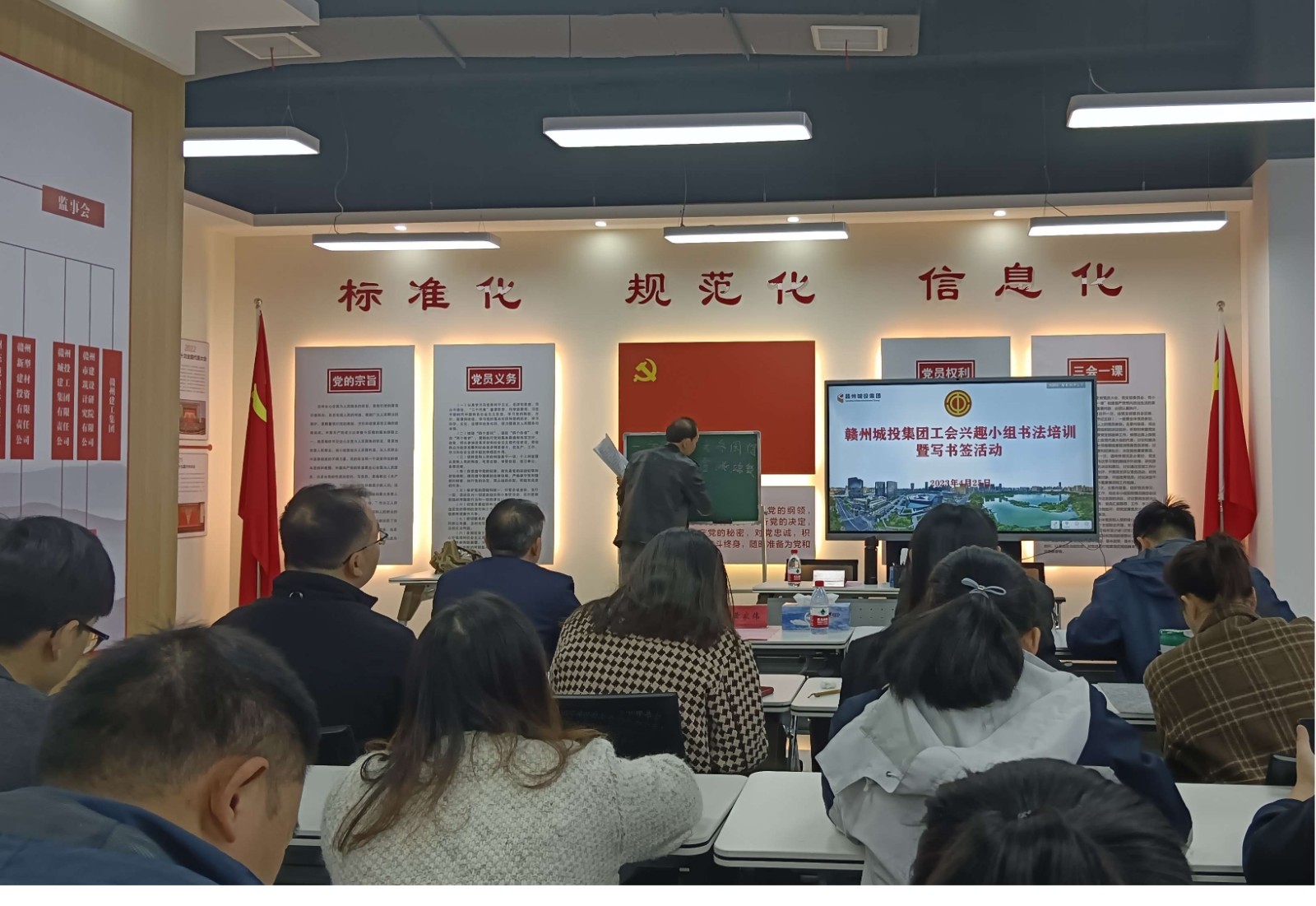 為傳承中華優(yōu)秀傳統(tǒng)文化,營造濃厚讀書學(xué)習(xí)氛圍,4月25日,贛州城投集團(tuán)工會(huì)興趣活動(dòng)小組開展書法培訓(xùn)暨寫書簽活動(dòng)。集團(tuán)工會(huì)主席黃家偉出席活動(dòng),集團(tuán)30余名書畫、寫作興趣愛好者參加活動(dòng)。