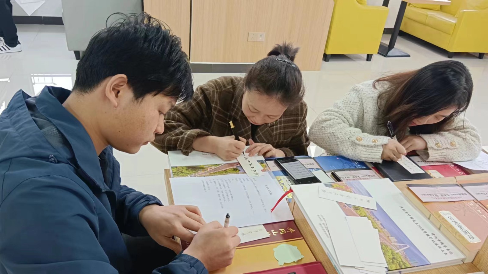 培訓(xùn)結(jié)束后,書畫、寫作興趣愛好者以讀書為主題,開展了形式多樣的寫書簽活動(dòng)。