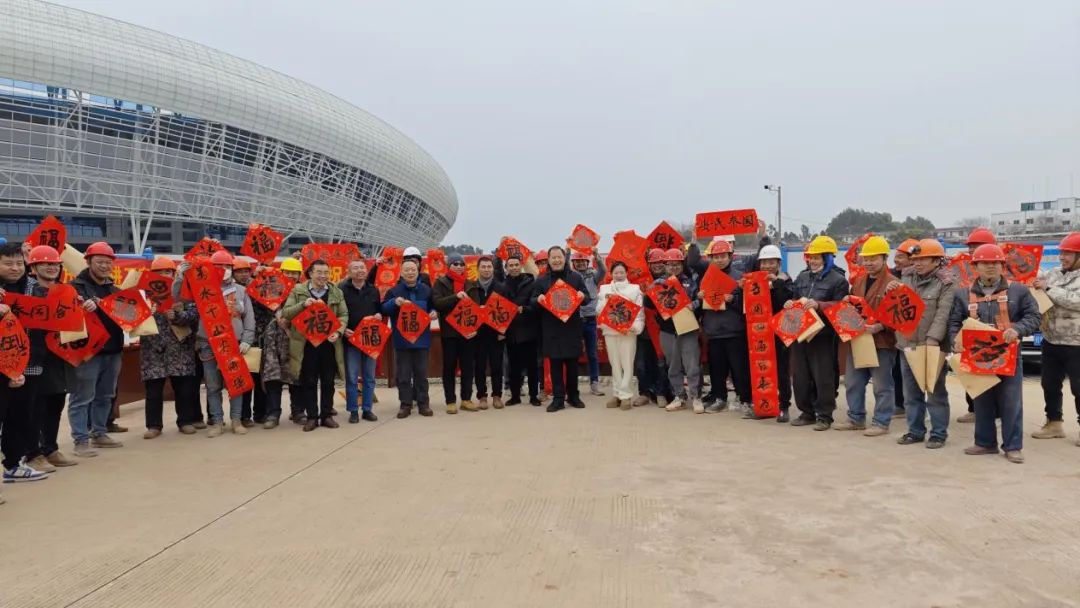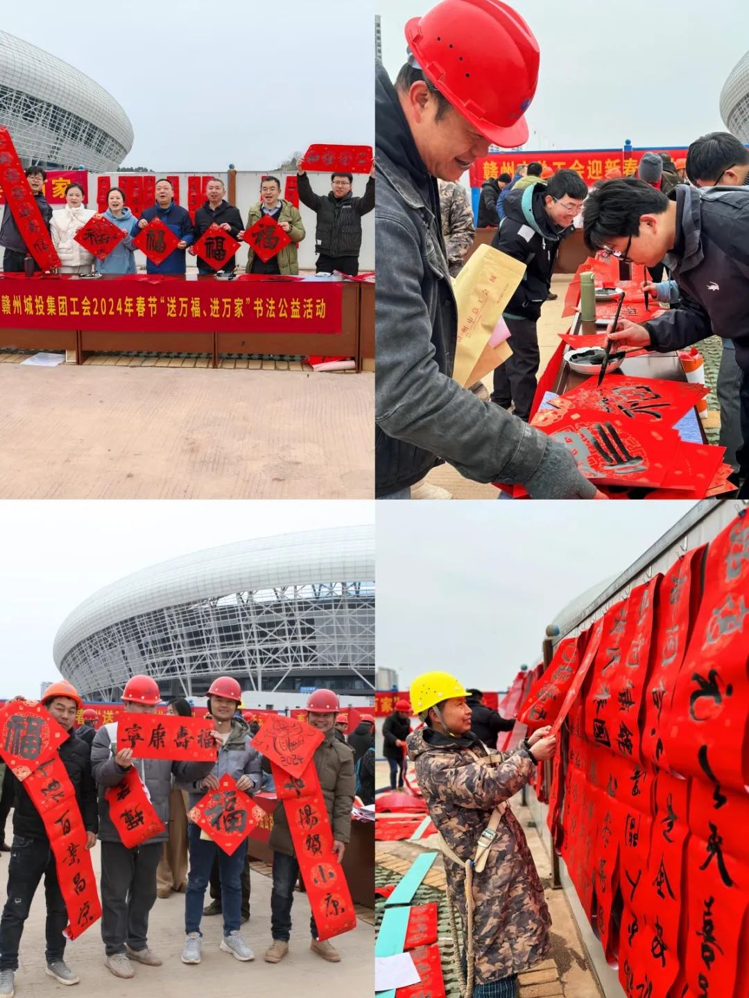 1月25日,贛州市總工會(huì)、贛州城投集團(tuán)工會(huì)在贛州市全民健身中心一期項(xiàng)目工地開展迎新春“送萬福、進(jìn)萬家”書法公益活動(dòng),為在寒冬里堅(jiān)守崗位的一線工人書春送福,送去工會(huì)“娘家人”的關(guān)懷溫暖,為2024年春節(jié)營(yíng)造歡樂吉祥的節(jié)日氛圍。