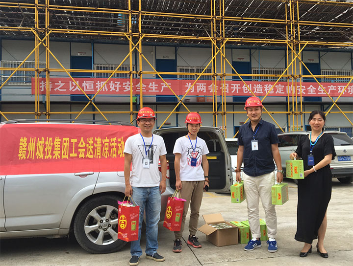 盛夏酷暑,驕陽似火。7月16日至7月23日,贛州城投集團工會認真貫徹落實集團黨委的指示精神,心系項目一線的廣大干部員工,積極開展“夏季送清涼”活動,認真做好防暑降溫工作,用實際行動踐行黨的十九大精神,聯(lián)系關(guān)愛干部員工,發(fā)揮橋梁紐帶作用。集團工會主席、總經(jīng)理助理肖暉帶隊走訪慰問。