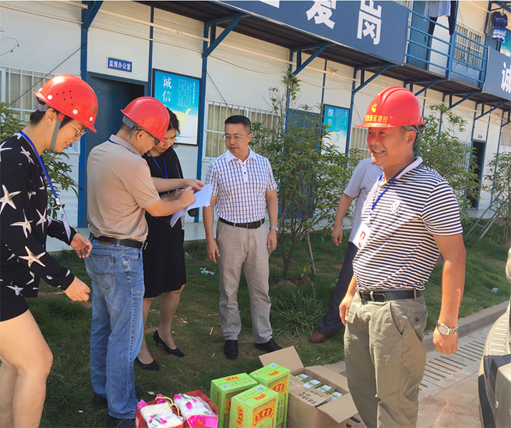 走訪慰問過程中,肖暉主席首先向高溫季節(jié)仍然堅守在工地一線的廣大干部員工致以誠摯的問候,與他們親切交談,鼓勵大家鼓足干勁,加油實干,克服高溫、疲勞等不利因素,合理安排工作和休息時間,做到安全文明施工,確保工程建設(shè)進度。并向他們送上防暑降溫飲料、綠豆、毛巾等物品,把集團黨委和工會的關(guān)懷送到他們手上。
