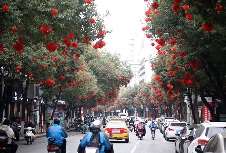今年除了火紅的燈籠外,此次春節(jié)氛圍營(yíng)造設(shè)計(jì)比去年增加了福字文化元素,順應(yīng)了習(xí)近平總書記的新春祝福語(yǔ)中的“和順致祥 幸福美滿”祝福。同時(shí),依舊延續(xù)了國(guó)慶氛圍營(yíng)造的“晝夜結(jié)合”的特點(diǎn),安裝了LED燈籠,讓夜晚的城市變得更加璀璨迷人。