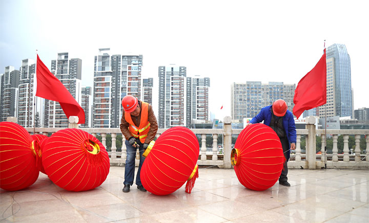 春節(jié)臨近,國(guó)內(nèi)疫情仍面臨著“外防輸入、內(nèi)防反彈”的壓力,為更好地給市民朋友營(yíng)造歡樂喜慶的春節(jié)氛圍,贛州城投集團(tuán)下屬子公司生態(tài)投資公司正在中心城區(qū)的六個(gè)主要節(jié)點(diǎn)(贛州火車站、高鐵西站、黃金機(jī)場(chǎng)等)、十條主要道路(長(zhǎng)征大道、文清路、厚德路、健康路、興國(guó)路等)、六條主要橋梁(飛龍大橋、西河大橋、楊梅渡大橋、章江大橋等)、八個(gè)主要公園(黃金廣場(chǎng)、贛州公園、中央生態(tài)公園、八境公園等)緊鑼密鼓地進(jìn)行春節(jié)氛圍營(yíng)造工作,打造“留贛過(guò)年”的溫暖年味。