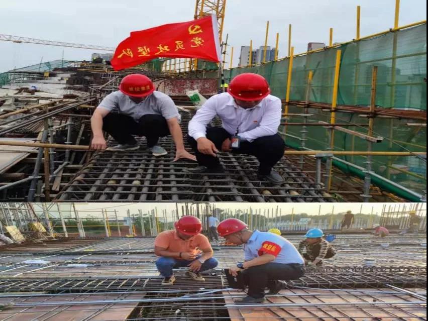 項目部在柱頂環(huán)梁模板支撐體系搭設(shè)、鋼筋綁扎攻堅中,遇到了斜梁鋼筋交叉、節(jié)點處鋼筋極密的特殊情況,同時,柱頂環(huán)梁超重超高,且為雙曲面結(jié)構(gòu),施工難度大、定位難度大。為破解這些難題,工程管理公司派駐項目部的黨員精心組織各參建單位,積極實施“支部建在項目上、黨旗飄在陣地上、黨員沖在一線上”的項目黨建工作法,在施工過程中,臨時聯(lián)合黨支部黨員及參建各方全程監(jiān)督旁站,實現(xiàn)全過程安全、質(zhì)量管控,達(dá)到了預(yù)期計劃目標(biāo)。