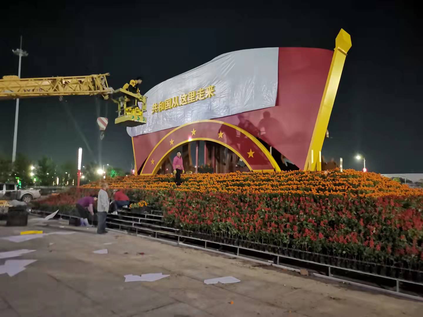 為了能夠按照市委宣傳部要求的時間節(jié)點完成所有項目的制作安裝,高鐵建投公司上下齊心協(xié)力、現(xiàn)場辦公,并在施工過程中強化黨建引領(lǐng),發(fā)揮黨員先鋒模范作用,劃分“黨員責任區(qū)”,成立了紅色氛圍提升項目施工組、監(jiān)督組和協(xié)調(diào)組。施工組緊盯廠家制作和施工現(xiàn)場;監(jiān)督組全過程監(jiān)督制作質(zhì)量和現(xiàn)場安全;協(xié)調(diào)組積極對接市委宣傳部等部門確定所有方案要求,對接黃金機場、高鐵西站及火車站等各方,確?,F(xiàn)場正常施工。