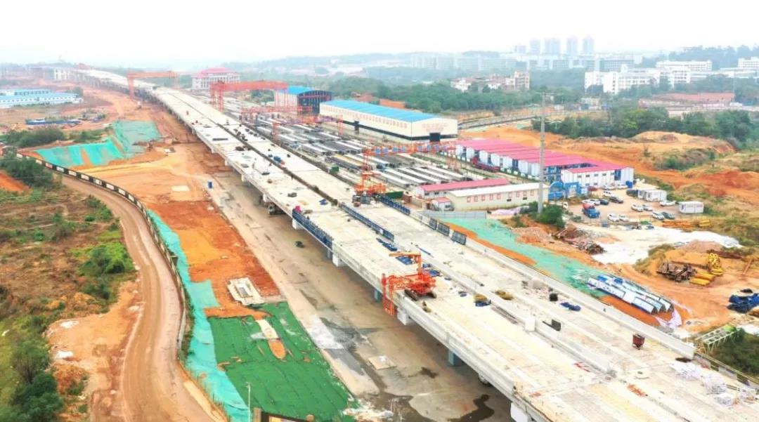 蓉江三路快速路(含地下綜合管廊)項(xiàng)目作為“四橫六縱”中的一條南北走向主干線,南起丁香路,北至筱壩大橋南端接地點(diǎn),總投資約25.87億元,全長(zhǎng)約5.1公里,主路為高架段城市快速路,規(guī)模為雙向6車(chē)道。項(xiàng)目于2020年8月1日正式開(kāi)工,截至2021年11月15日,共完成總工程量的51%,其中橋梁工程完成66.2%,道路工程完成48.7%,地下綜合管廊工程完成約84.6%,預(yù)計(jì)在2022年年底完工。項(xiàng)目建成后,可實(shí)現(xiàn)蓉江新區(qū)、高鐵新區(qū)南北向聯(lián)系,大大提高新老城區(qū)交通服務(wù)水平,實(shí)現(xiàn)贛州交通發(fā)展水平與社會(huì)經(jīng)濟(jì)發(fā)展水平相適應(yīng)。