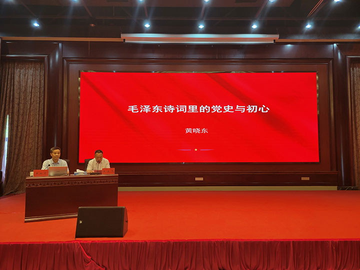 黃曉東同志以《毛澤東詩詞里的黨史與初心》為主題,以毛澤東同志的革命道路為主線,品讀毛澤東同志不同時期的詩詞,從離愁別恨里的黨史與初心等10個方面,回溯偉人立志報國救亡、書生意氣的青年時代、艱苦卓絕的革命崢嶸歲月、如火如荼的社會主義革命和建設(shè)歷程,彰顯偉人獨(dú)具魅力的個性情懷和豪邁氣概,闡述了共產(chǎn)黨人的初心與使命。