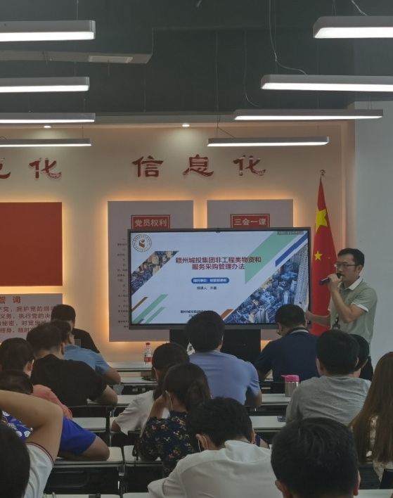 本次培訓共分兩方面內容:一是對《贛州城市投資控股集團有限責任公司非工程類物資和服務采購管理辦法》、《贛州城市投資控股集團有限責任公司非工程類物資和服務采購管理辦法》、《贛州城市投資控股集團有限責任公司網(wǎng)絡安全事件應急預案(試行)》及《贛州城市投資控股集團有限責任公司資產租賃管理辦法》三個制度進行了宣貫;二是特別邀請了中咨江西工程有限公司投資經(jīng)理盧凱對投后管理進行專題培訓授課,主要針對投資監(jiān)管的三道防線、投資項目投前決策階段及實施階段所包含的工作內容、投資項目風險研判以及應對措施、投資項目實施后的效果和效益分析方法進行了全面深入講解。