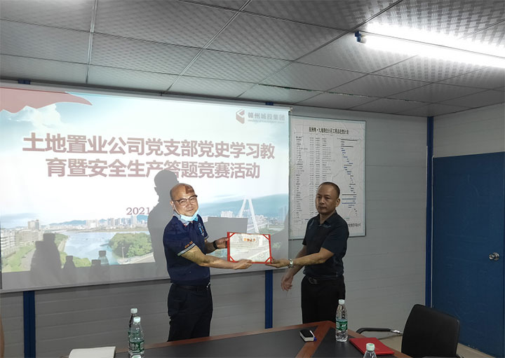 為進(jìn)一步鞏固深化黨史學(xué)習(xí)教育成果,促進(jìn)建黨100周年期間的安全生產(chǎn)工作,日前,土地置業(yè)公司黨支部在星洲灣·九境項目部會議室舉辦建黨100周年黨史學(xué)習(xí)教育暨安全生產(chǎn)答題競賽,土地置業(yè)公司全體員工,星州潤達(dá)集團(tuán)、贛州建工集團(tuán)、星洲地產(chǎn)部分代表等20余人參加。