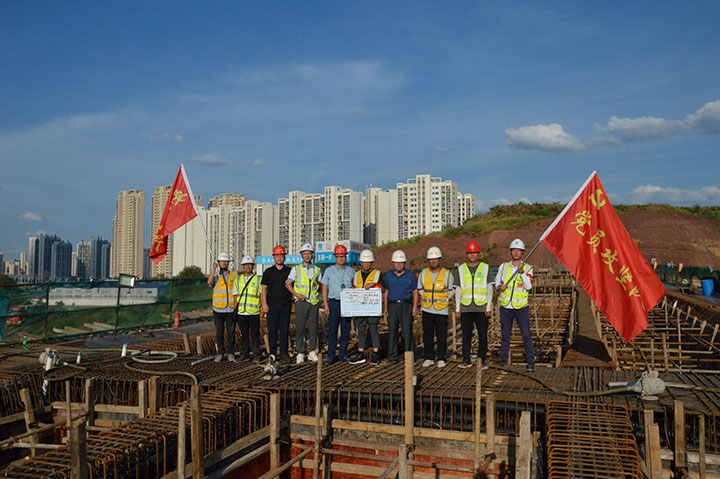 蟠龍大橋項目橋梁工程全長1376米,由南北引橋工程和主橋工程組成,其中引橋工程有九聯(lián)預(yù)應(yīng)力現(xiàn)澆箱梁(980米),主橋工程有一聯(lián)單索面三塔雙層鋼桁梁(396米),本次首聯(lián)現(xiàn)澆箱梁橋面寬16.5米、高度2米、混凝土用量1593方,施工采用盤扣式滿堂支架技術(shù)措施。據(jù)悉,考慮到本次混凝土澆筑方量大、體積大、砼標(biāo)號高、高溫氣候等技術(shù)因素及支模架危險性較大工程等安全因素,臨時黨支部充分運用學(xué)習(xí)交流、溝通協(xié)調(diào)機制,積極組織參建各方對支模架安全技術(shù)方案進行了專家論證評審,確保施工安全可靠、技術(shù)可行,并提前到商品混凝土攪拌站開展溝通協(xié)調(diào),掌握原材料質(zhì)量及倉庫儲備數(shù)量,提前做好夜間值班分工、后勤保障服務(wù)工作,確保箱梁澆筑順利完成。
