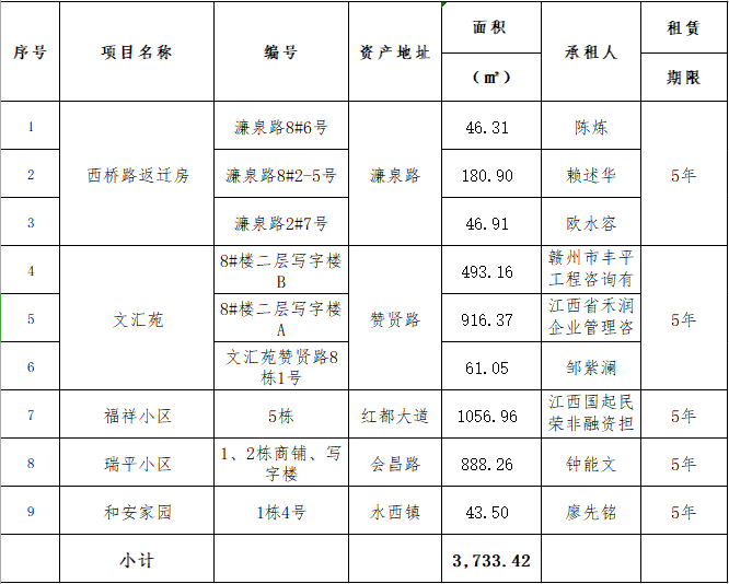 2021年5月28日上午10時,在贛州市公共資源交易中心舉行的贛州振興實業(yè)有限責(zé)任公司贊賢路等二十七宗資產(chǎn)公開招租(項目編號GZCQ2021072),現(xiàn)將公開招租成交情況公示如下: