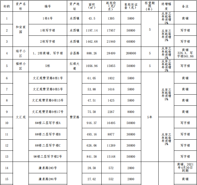 贛州振興實業(yè)有限責(zé)任公司委托江西江南拍賣有限公司,定于2021年5月28日10:00開始在贛州市公共資源交易中心(長征大道9號)進行國有資產(chǎn)公開招租,現(xiàn)歡迎符合條件的單位或個人前來報名參加競租。