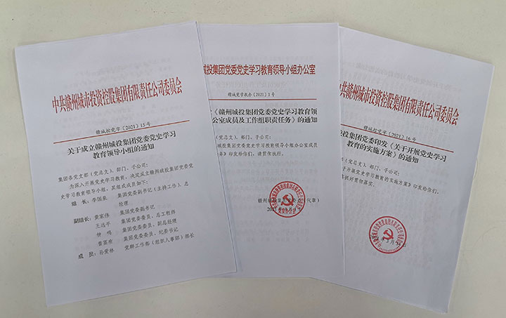 隨后,迅速成立了贛州城投集團黨委黨史學習教育領導小組,下設1個辦公室,分4個工作組,推動黨史學習教育工作人員到位、分工到位、責任到位。壓實各黨支部(黨總支)責任,要求各黨支部(黨總支)結合實際制定黨史學習教育實施方案、成立組織機構。各黨支部(黨總支)書記主動投入足夠的時間和精力,從嚴從實抓好黨史學習教育各項部署要求落實。
