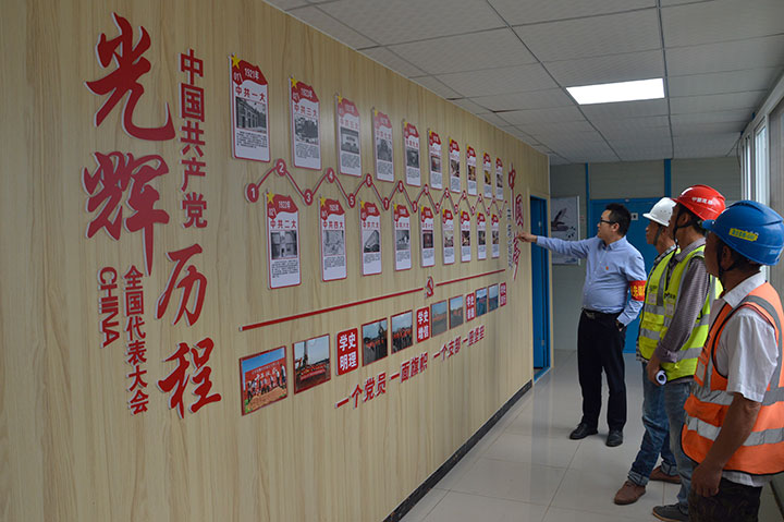 在贛州市蟠龍大橋項目部的黨員活動室走廊,贛州城投集團工程管理公司黨總支設置了一面黨史學習墻,記錄黨從1921年中共一大到十九大的偉大光輝歷程。在該項目部,贛州城投集團黨員帶著項目其他人員,定期到黨史學習墻前開展“黨史接龍”學習,重溫歷史,傳承優(yōu)良的革命傳統(tǒng)。