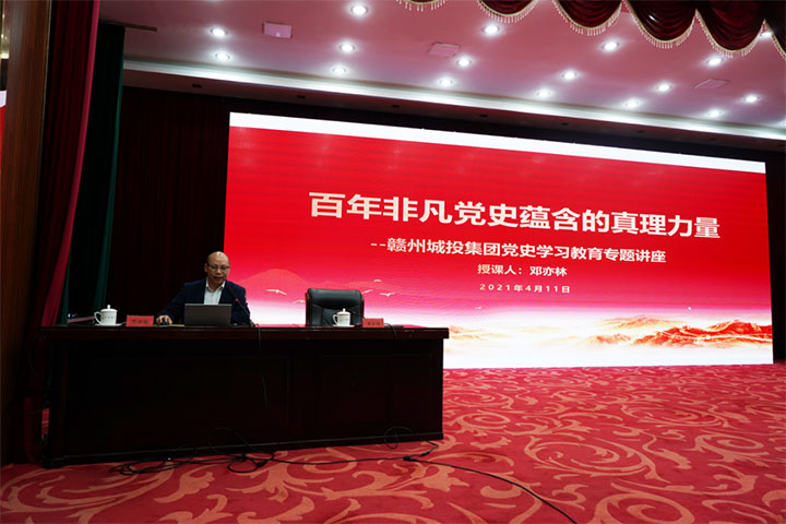 開(kāi)學(xué)典禮后,贛州城投大學(xué)(黨校)第二學(xué)期第一課黨史學(xué)習(xí)教育專題講座開(kāi)課。本次邀請(qǐng)了江西理工大學(xué)應(yīng)用科學(xué)學(xué)院黨委書(shū)記、馬克思主義學(xué)院教授、碩士生導(dǎo)師鄧亦林以《百年黨史中蘊(yùn)含的真理力量》的主題為全員作黨史學(xué)習(xí)教育專題講座。