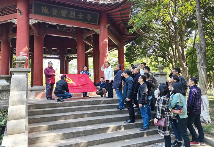 建筑設(shè)計(jì)院黨支部全體黨員來(lái)到八境公園陳贊賢烈士紀(jì)念亭,緬懷革命烈士事跡,重溫入黨誓詞,開(kāi)展黨史學(xué)習(xí)教育。