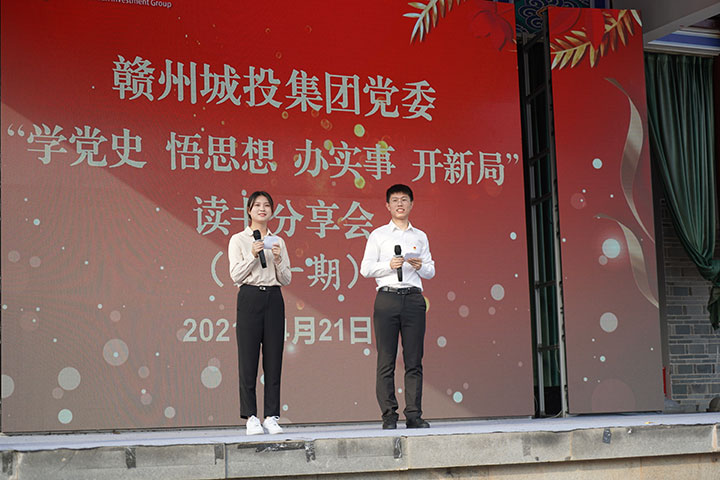 贛州城投集團讀書分享會自從2014年10月創(chuàng)辦以來,已經(jīng)打造成為集團的知名品牌活動。根據(jù)集團黨史學習教育部署,在第26個“世界讀書日”來臨之際,4月21日下午,贛州城投集團黨委2021年“學黨史 悟思想 辦實事 開新局”讀書分享會第一期在郁孤臺文化街區(qū)順利舉辦,本次分享會由集團機關一支部、機關二支部、土地置業(yè)公司黨支部聯(lián)合承辦。集團黨委副書記黃家偉出席,各黨支部書記、部分黨員代表參加本次活動。