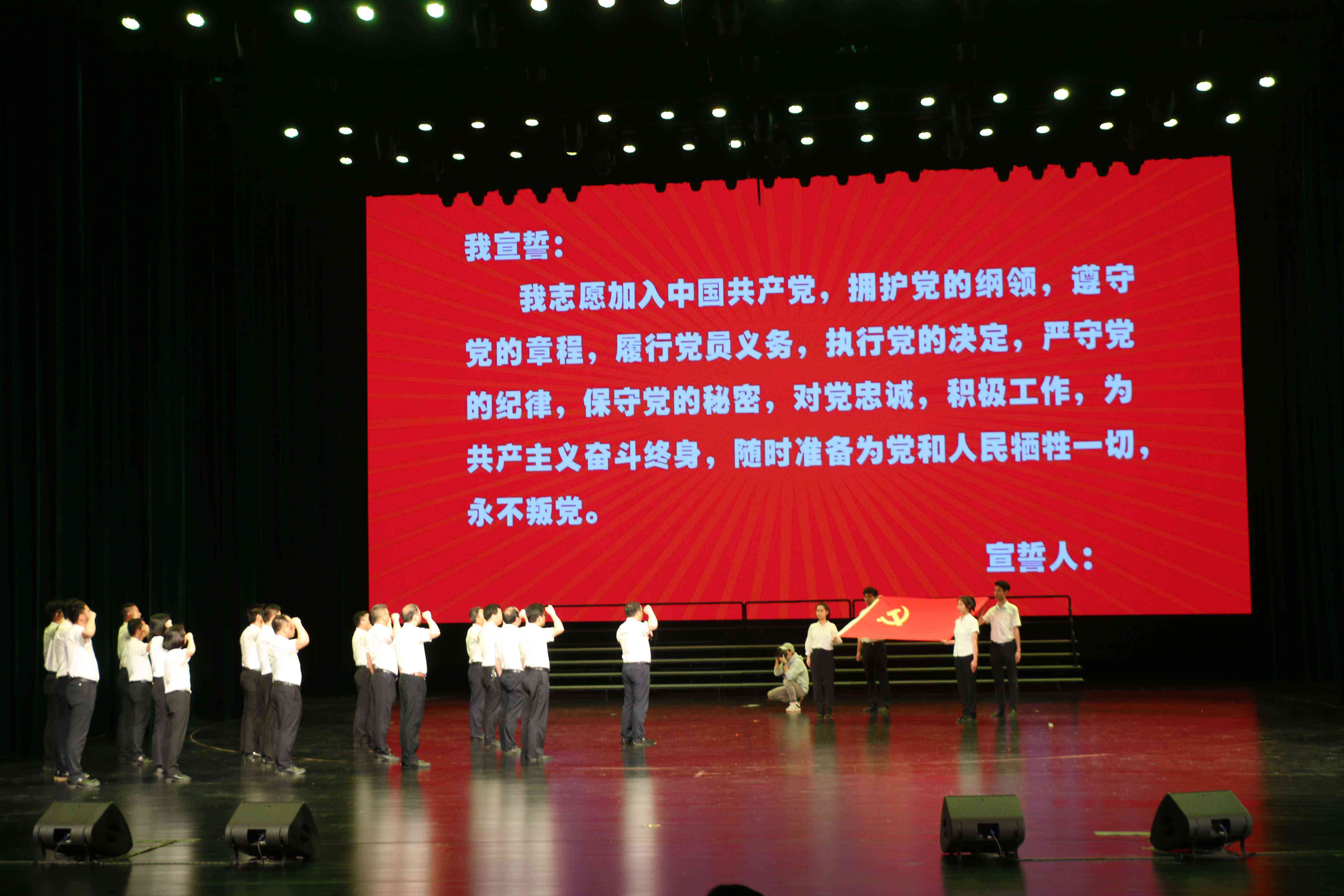 晚會現(xiàn)場,贛州城投集團(tuán)黨委副書記(主持工作)、總經(jīng)理李國泉帶領(lǐng)全體黨員高管和現(xiàn)場全體黨員一起重溫入黨誓詞,牢記入黨初心,堅定理想信念。融入晚會的黨史知識答題互動環(huán)節(jié),進(jìn)一步豐富學(xué)黨史形式,濃厚黨史學(xué)習(xí)教育氛圍,激發(fā)了現(xiàn)場觀眾學(xué)習(xí)黨史的濃厚興趣。最后,晚會在大合唱《英雄贊歌》中落下帷幕。