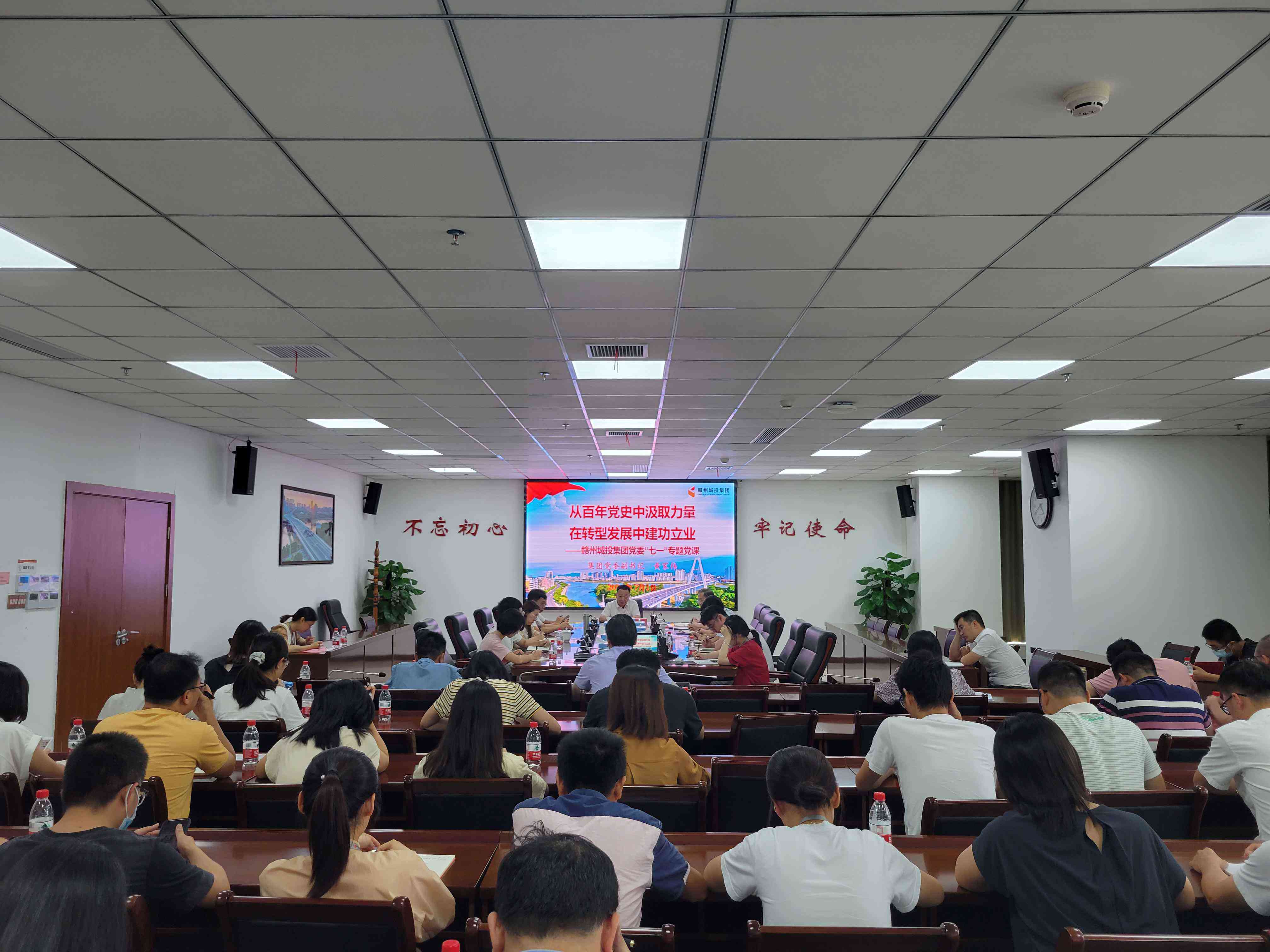 在收聽收看慶祝中國共產(chǎn)黨成立100周年大會直播盛況后,為學深悟透習近平總書記發(fā)表的重要講話精神,7月1日下午,贛州城投集團黨委副書記黃家偉以《從百年黨史中汲取力量,在轉(zhuǎn)型發(fā)展中建功立業(yè)》為題,上了一堂精彩黨課。集團機關(guān)一支部、建筑設計院公司黨支部、天成設計院黨支部全體黨員、入黨積極分子、入黨申請人以及集團其他支部的黨員代表等共計70余人聆聽黨課。
