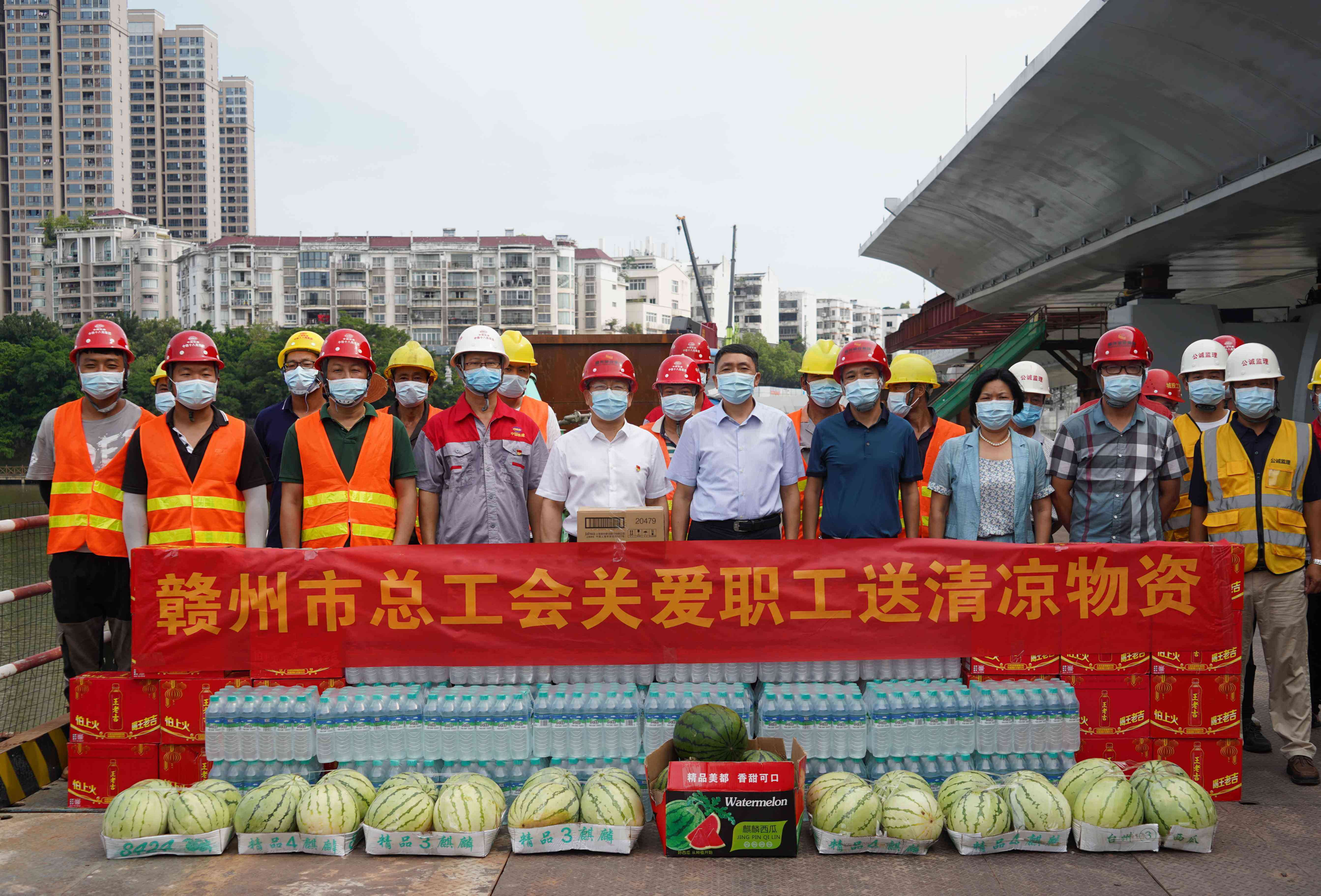 為鞏固解困脫困工作成果,提高職工生活品質,使高溫下作業(yè)的一線職工有更多的獲得感、幸福感、安全感,8月25日,贛州市總工會二級調研員賴定銘一行來到贛州城投集團南河大橋拓寬改造(二期)工程項目工地開展“關愛職工 夏送清涼”走訪慰問活動,送上市總工會的關懷。贛州城投集團黨委副書記黃家偉,工程管理公司相關負責人,集團工會、文化宣傳部、項目部業(yè)主、監(jiān)理和施工單位相關人員等參加慰問。
