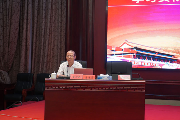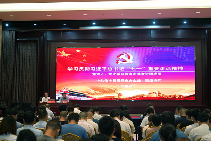 9月5日,根據(jù)市委統(tǒng)一部署,黨史學(xué)習(xí)教育市委宣講團(tuán)到贛州城投集團(tuán)開(kāi)展學(xué)習(xí)貫徹習(xí)近平總書(shū)記“七一”重要講話(huà)精神專(zhuān)題宣講,市委宣講團(tuán)成員,信豐縣委黨史辦主任莊春賢作主題宣講。集團(tuán)黨委副書(shū)記黃家偉主持并講話(huà),集團(tuán)在家的高管出席宣講會(huì),集團(tuán)全體中層管理人員、各黨支部(黨總支)書(shū)記、部分黨員代表參加。