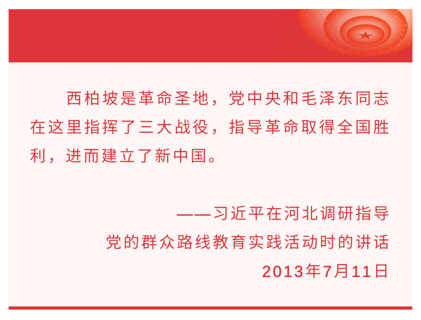 中國共產(chǎn)黨的百年輝煌歷程中,位于河北省平山縣的西柏坡是一個耀眼的紅色地標,有著“新中國從這里走來”的美譽——