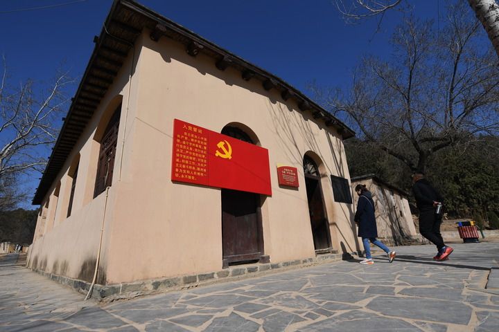 △游客進入河北省平山縣西柏坡中國共產(chǎn)黨七屆二中全會會址參觀(2019年3月6日攝)。新華社記者 牟宇 攝