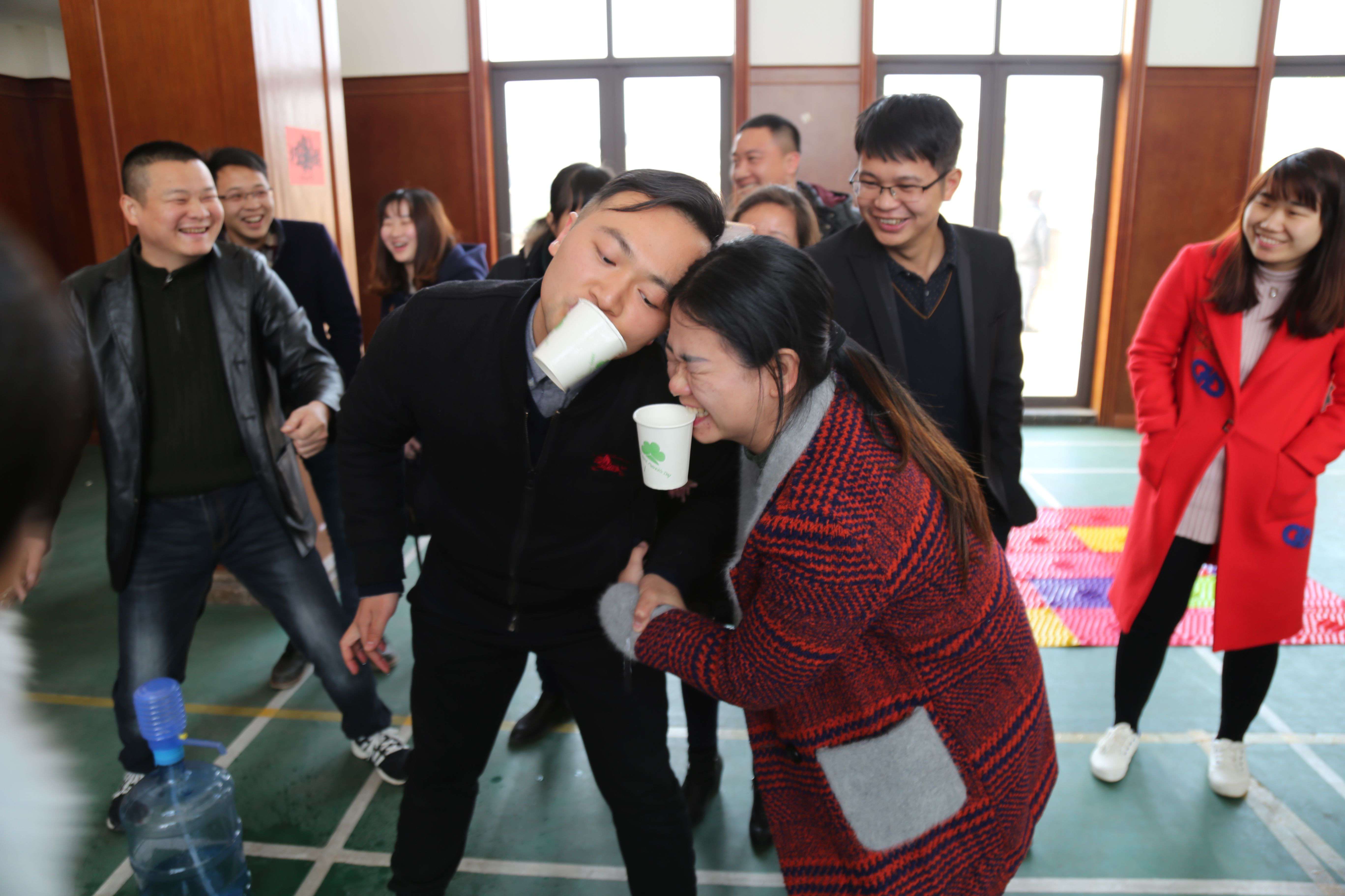 5人陣列"銜紙杯傳水",肢體靈活、默契十足。賽場(chǎng)上,參賽隊(duì)員卯足了勁、拼盡全力,賽場(chǎng)下,觀眾情緒熱烈、沸反盈天,一派和諧歡樂(lè)的氛圍。