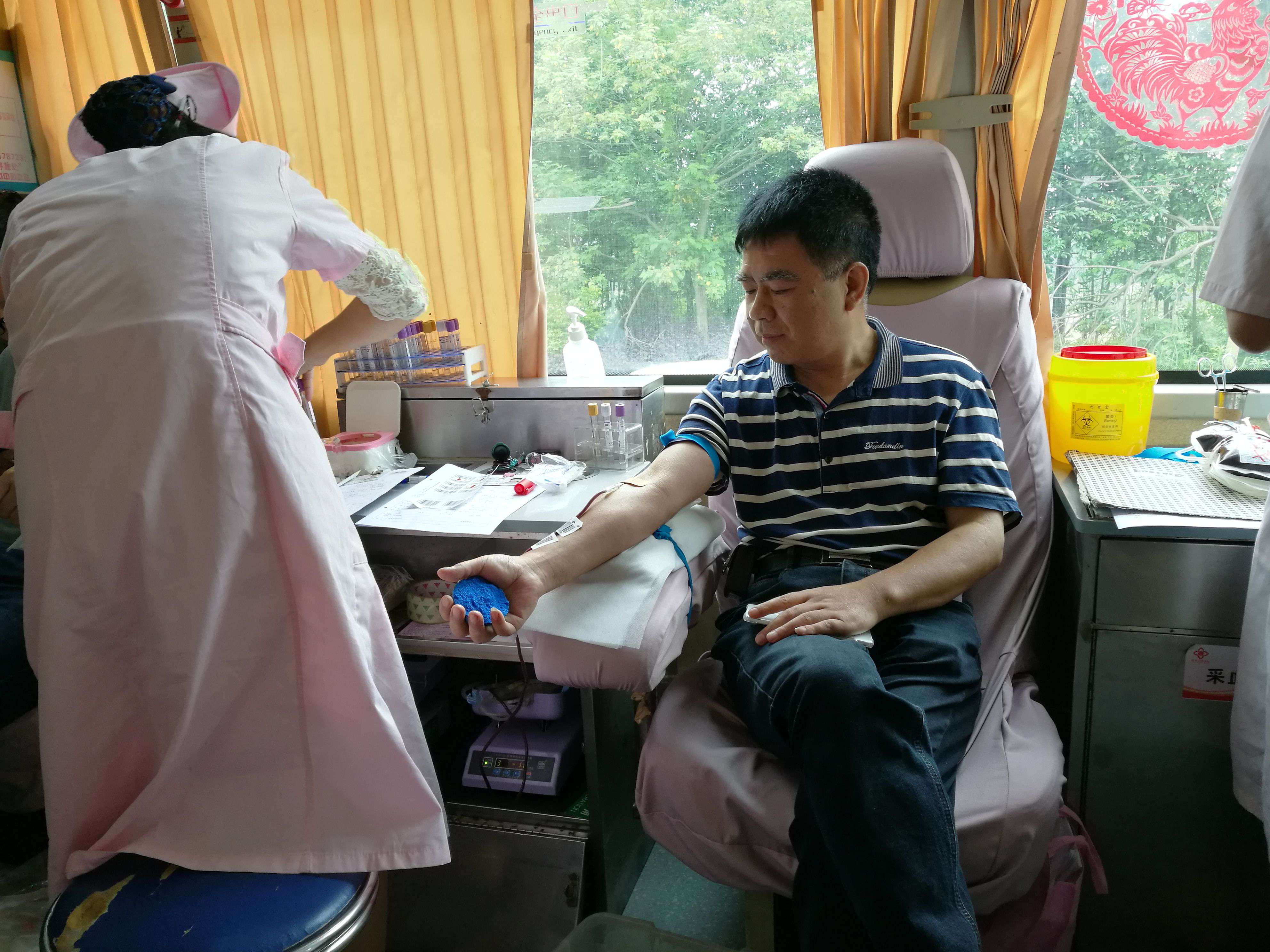 上午一上班,市中心血站的獻血車就停靠在集團辦公樓前,不少員工正在那里等候獻血,他們當中有的已經(jīng)多次獻血。在醫(yī)護人員的指導下,前來獻血的員工認真填寫登記表格,接受血壓、血液檢測,都希望自己能夠獻血成功。在采血車上,大家面帶微笑,擼起袖子,拍照留念,他們是那么自豪,那么愉悅。一位54歲的員工在獻血的同時,還不忘給大家宣講獻血知識:“獻血對自己的健康有好處,能增強造血功能,降低患心臟病的危險,而且能救死扶傷,幫助他人,確實是利人利己之舉。”