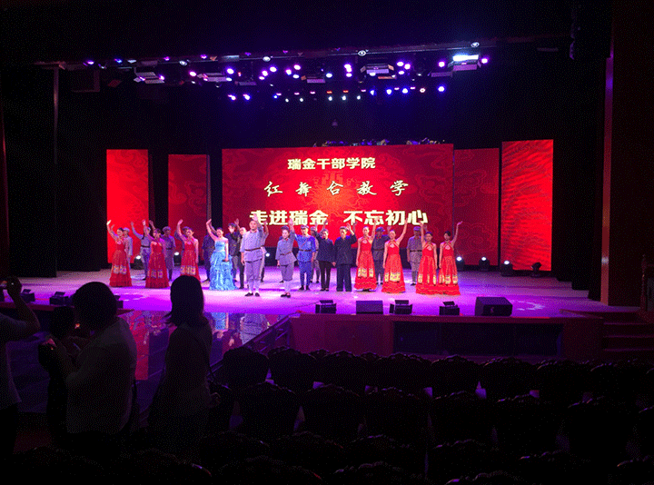 在紅舞臺(tái)教學(xué)點(diǎn),學(xué)員們屏息凝神,接受《走進(jìn)瑞金 不忘初心》紅舞臺(tái)教育。通過(guò)演職人員的精彩表演,把《八子參軍》的故事鮮活的呈現(xiàn)在舞臺(tái)上,把故事的珍貴史料和主人公的感人事跡展現(xiàn)在學(xué)員面前,充分體現(xiàn)了當(dāng)年參加革命的干部群眾矢志不渝、勇于犧牲的崇高精神,充分現(xiàn)了我們黨顧全大局、嚴(yán)守紀(jì)律的優(yōu)秀品質(zhì)。紅舞臺(tái)教學(xué)讓學(xué)員們對(duì)“中央蘇區(qū)與蘇區(qū)精神”有了更全面的、更系統(tǒng)的認(rèn)識(shí)和理解,進(jìn)一步堅(jiān)定了學(xué)員們不忘初心、牢記使命,不斷增強(qiáng)用習(xí)近平新時(shí)代中國(guó)特色社會(huì)主義思想武裝頭腦、指導(dǎo)實(shí)踐、推動(dòng)工作的思想自覺(jué)和行動(dòng)自覺(jué)。
